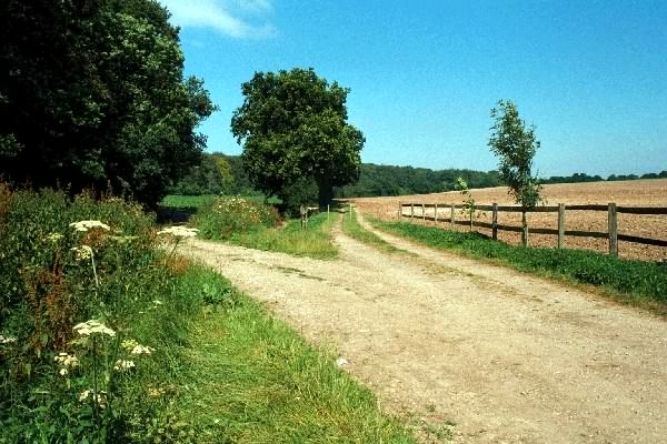Swanmore - Dundridge - Dean - Longwood Dean Lane - South Downs Way - Beacon Hill - Droxford - Mayhill Lane. Dundridge Lane, 500 m north of The Bowman - looking north-west Return To Map And Thumbnails Return To Home Page